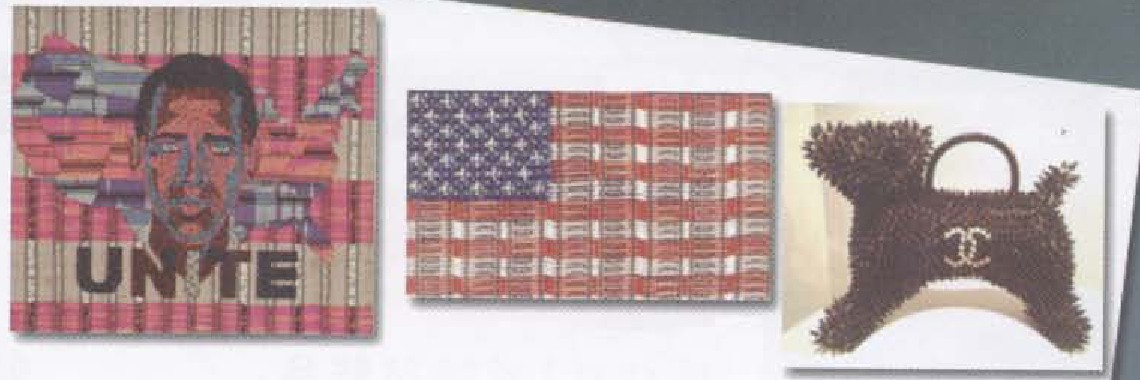 你们知道这些色彩斑斓的雕塑是用什么做成的吗?就是用大 家平时美术课上用的蜡笔。美国的赫伯·威廉姆斯是世界上 首屈一指的蜡笔艺术家:他认为蜡笔不仅仅可以用来画画,而是可以创作出各种“拼图”和雕塑。大家也不妨用手中的 蜡笔试试看,看能拼出什么有意思的图案呢?
