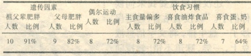 表l国防科大附小“超级”肥胖儿童问卷调查结果(共11人)