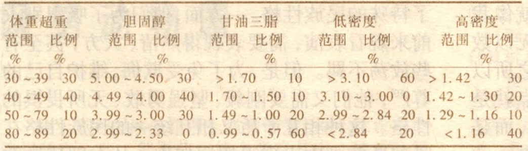 表1中数据显示,在肥胖儿童中,祖父母肥胖者占91%,父母肥胖者占82%,说明遗传是儿童肥胖的重要因素之一;从饮食习惯看,主食量偏多的占70%以上,喜食油炸食品者占多数,喜食蛋、奶者占多数,但喜食素菜者不多,说明不良的饮食习惯和不合理的饮食结构也是导致肥胖的因素之一;另外,由于科大附小学生绝大部分住在科大院内,上、下学步行时间短,加之其它运动量过少也是引起肥胖的因素之一。