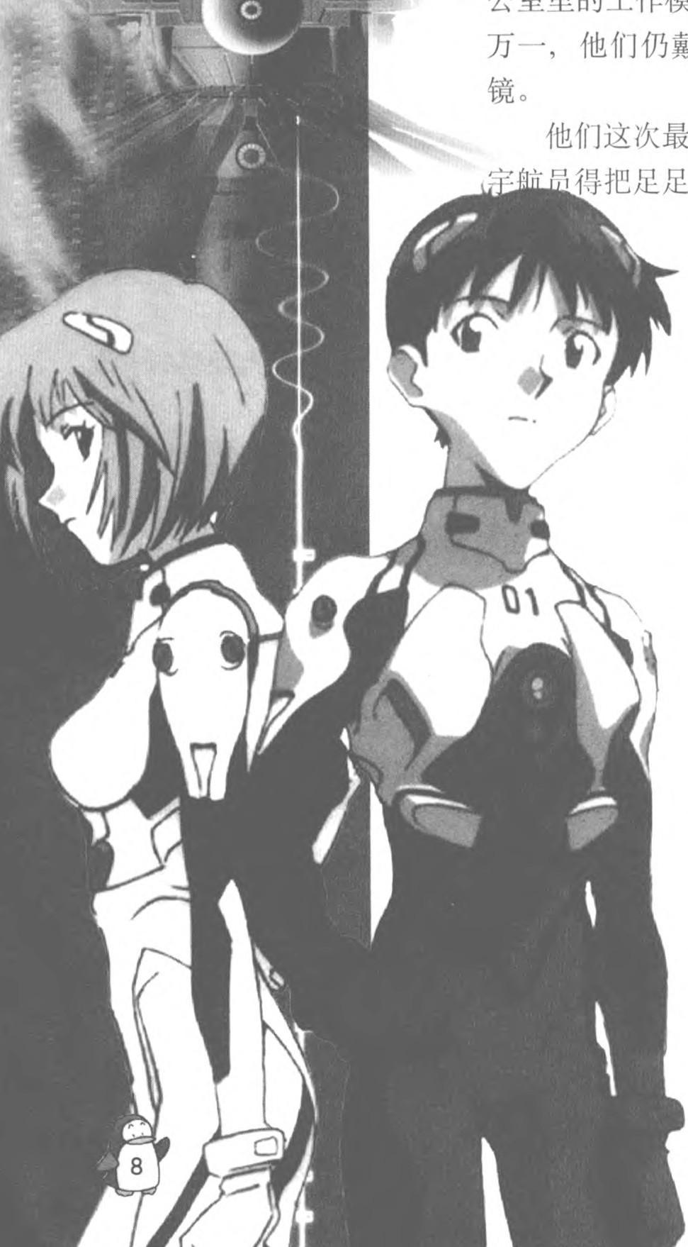 宇航员们深感重任在肩,因为他们这次的任务是“开启人类永久驻居太空之门”。他们立即开始工作:给各个舱里安装空气输送管道,采集空气标本,商讨工作计划等,这一切与在地面办公室里的工作模式并无区别。惟一不同的是,为防万一,他们仍戴着白色的氧气面罩和黑色的观察镜。