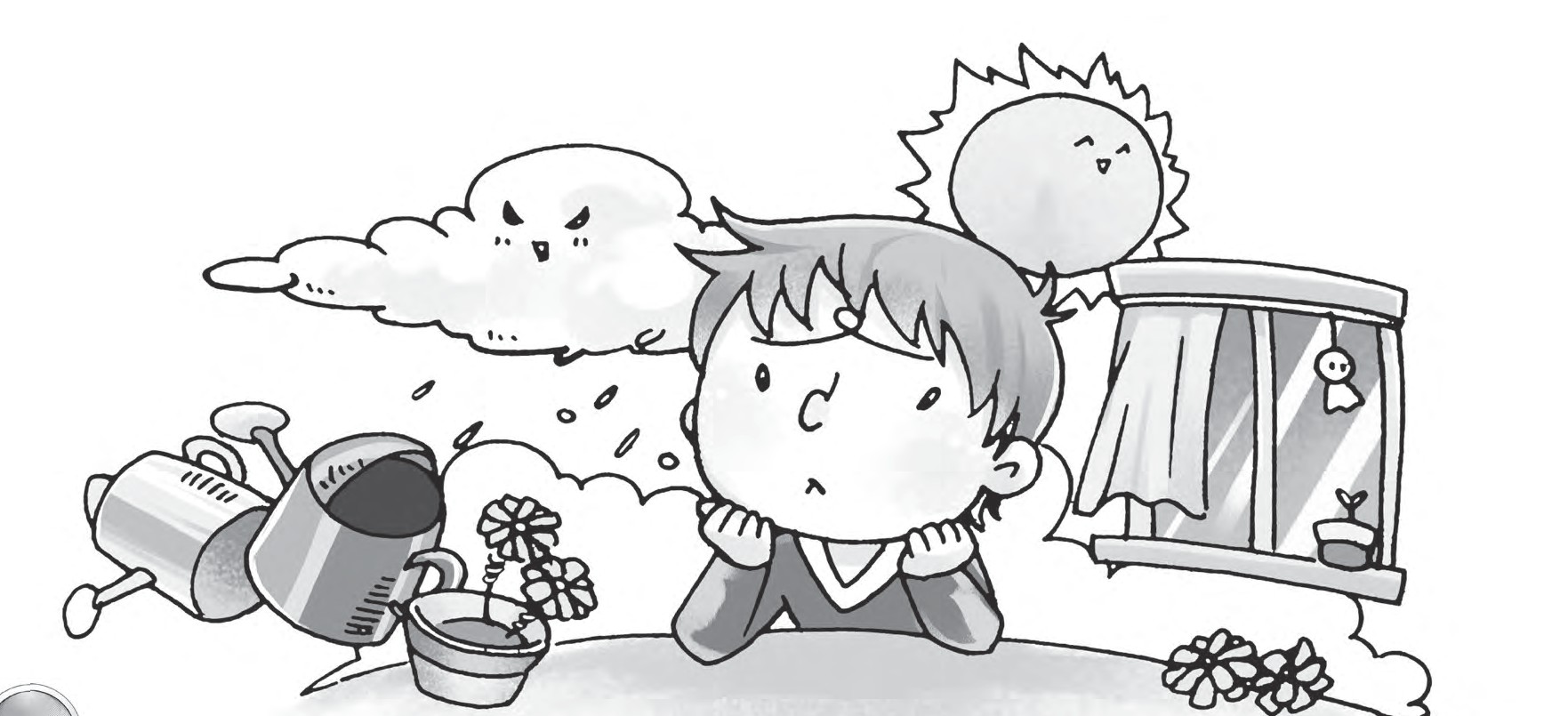 放学回到家的小豆丁很沮丧,因为今天的科技课王老师准备带他们去室外做科学实验的,结果被这场雨给浇灭了。