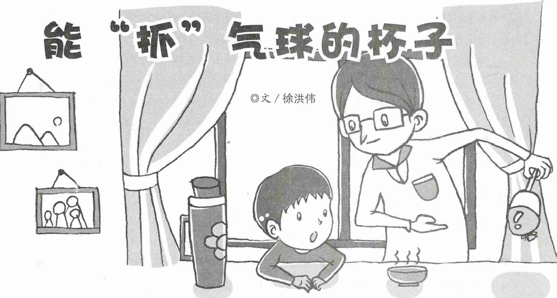 “不行吧,看我的!”爸爸说着,接过小豆丁手中的杯子,往杯子里倒了半杯热水,“稍等片刻……”大概20秒钟之后,爸爸把杯子里的热水倒出,同时迅速将杯口紧密地倒扣在气球上,然后轻轻地提起了杯子。