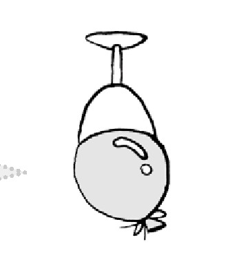 很快,气球、杯子、热水瓶,还有碗都准备好了。这时,爸爸一口气将气球吹大后,在开口处打上了个结,递给小豆丁,说:“你能用杯子把气球吸起来吗?”