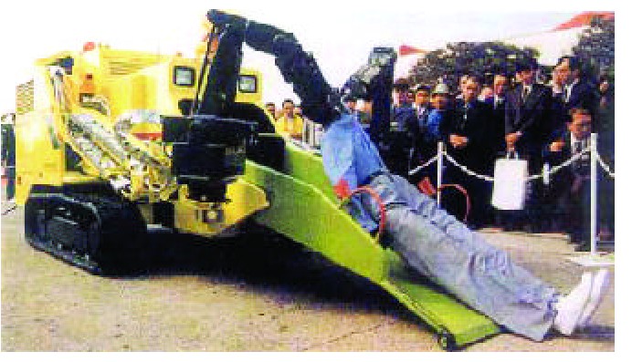 与侦察机器人只探灾情不同,救援机器人是典型的救死扶伤者。该机器人拥有一双特别的救援臂,可以冲入可能倒塌的建筑物内,并把昏迷的人搬出现场。在撤退过程中,它还能够顺便关闭煤气、水等阀门,并转移有毒物质,以免使灾情扩大。