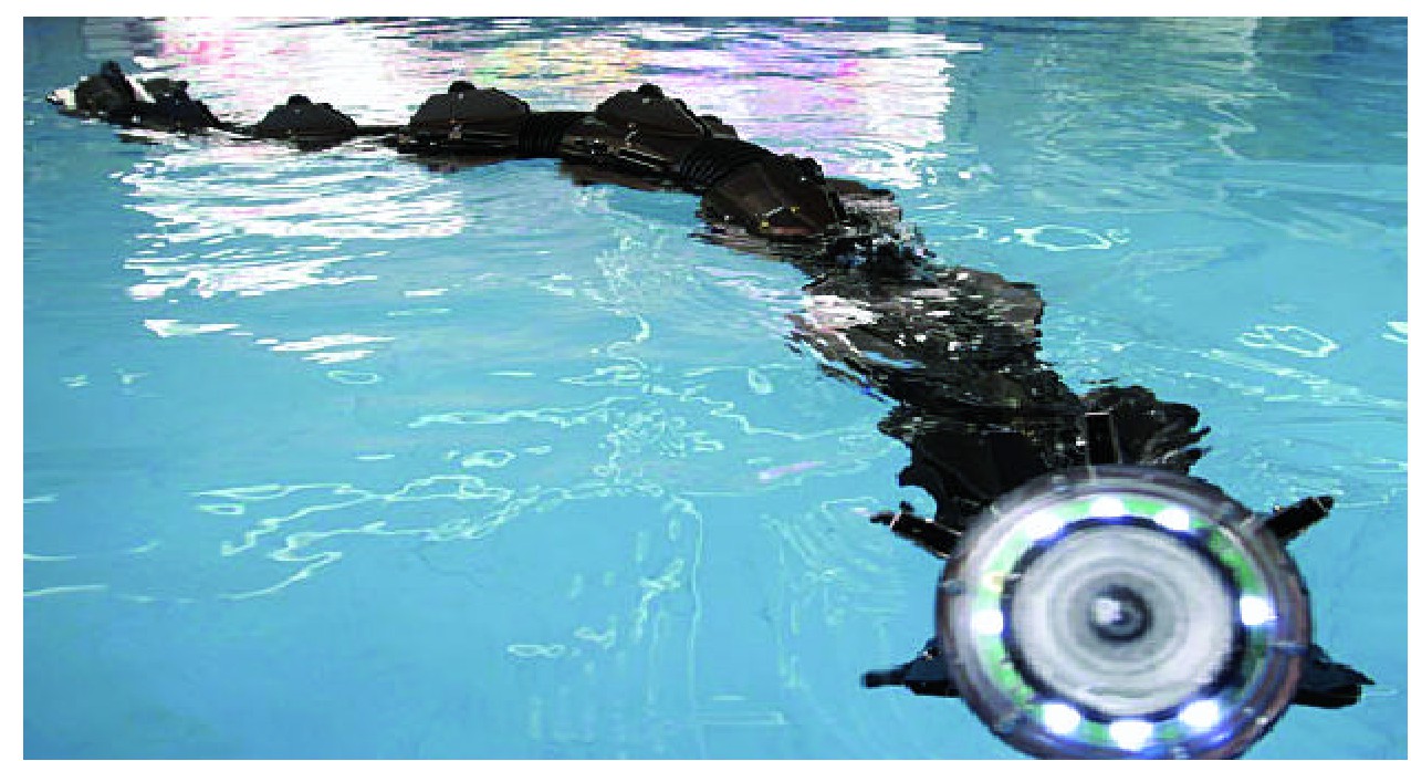 日本某科研机构所研制的蛇形机器人就是一种救援机器人。它全长1.2米,高0.12米,宽0.12米。它的身体共分为3节,每节均在两侧配备了爬行装置。包括两个汽缸在内,各节之间有3个连接点。根据不同的连接装置,各节的相对角度最大可弯曲到45度。既可翻越大型障碍物,而且发生侧翻时还能恢复原来的姿态。头部配备了摄像头、温度传感器、距离传感器、负责防水处理的麦克风和扬声器。通过这些装置,就能发现埋在瓦砾中的受害者。