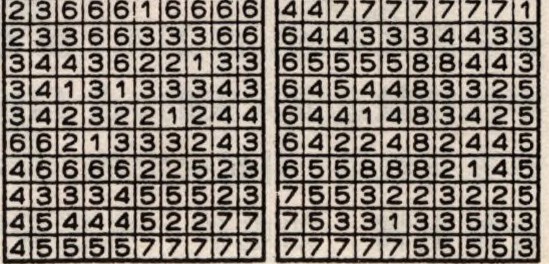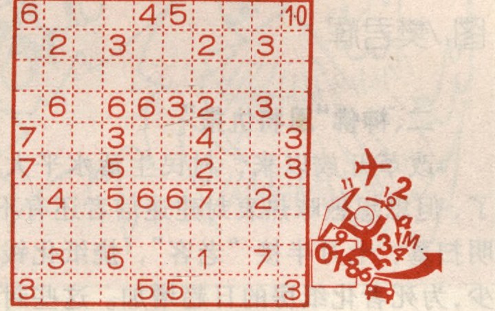 请你将格子纸上的每个一空格填上一个数字,要求与已填妥的数字连成一片,如“4”字,即在此区域有4个格子都填有4,又如“7”,即在上下或左右有7个格子应该是7,以此类推,你能完成吗?