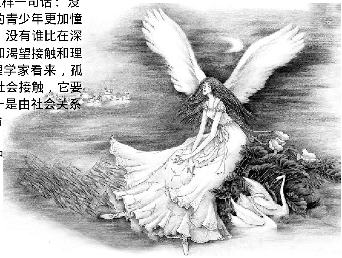 德国有一个著名的心理学家叫斯普兰格,他曾经说过这样一句话:“没有谁比在孤独小房里的青少年更加憧憬地眺望窗外的世界,没有谁比在深沉寂寞中的青少年更加渴望接触和理解外部世界。”在心理学家看来,孤独指的是缺乏正常的社会接触,它要具备以下三个特点:一是由社会关系缺乏所造成,二是不愉快、苦恼的,三是一种主观感觉而不是一种客观状态。