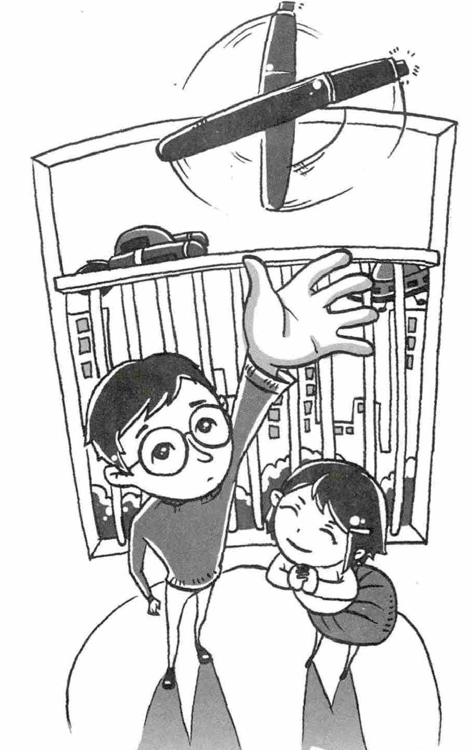 那支电子笔被抛得很高,一直在空中打着旋儿,一会儿笔尖朝向地面,一会儿按钮朝向地面。最终,一声“嚓”的轻响,按钮撞在地上,被按入笔身。