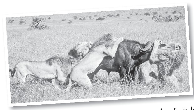 接下来,我们把关注的视角转同 非洲原野,那里的狮群可以长时间一 动不动地趴着,远远地望过去就像是 一堆堆黄褐色的土堆。偶尔转动下耳朵,好像是在向我们证明它们的存在。■,其余时间都是靠睡大觉非洲狮群一天最多用四五个小时去狩猎、进食,其余时间都是靠睡大觉来打发日子。这又是为什么呢?生物学家发现,对于恒温动物来说,运动会使其体温升高,加快身体水分散失的速度,进而带来致命的伤害。一位动物学家还专门研究了驼鹿,假如它们用很多的时间到处觅食,大量的运动就会使其体温上升到危险的界限。如果这时候再碰到敌人,它的狂命奔跑会使体温升得更高,很可能会被热死。为此,驼鹿就必须保持低体温,尽量减少运动量。在干旱的非洲草原上,狮群长时间不运动,多半也是为了减少自身水分的散失。
