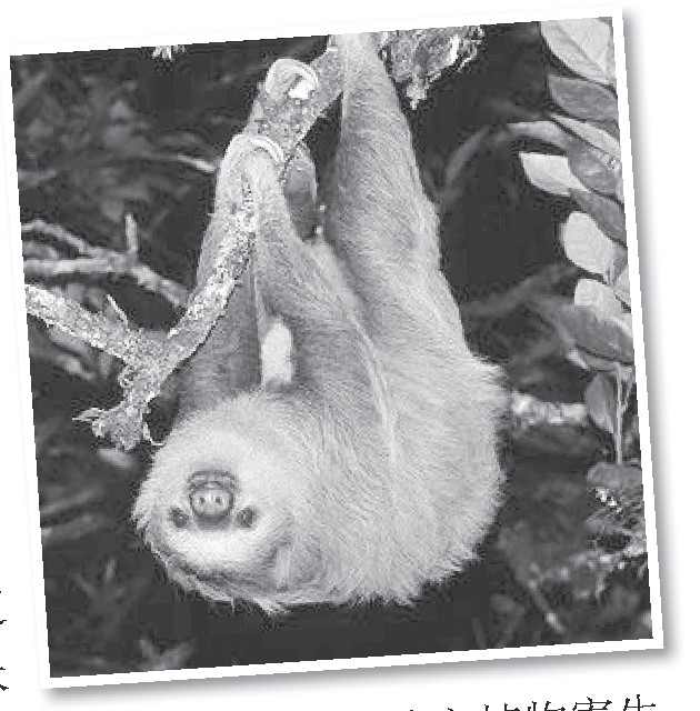 说到爱偷懒的动物,树懒一定能排到第一位吧,名字就能透露出其“懒”的特点。树懒生活在南美洲茂密的热带雨林里,每天懒在树上十七八个小时,什么事都懒得去做,连吃都懒得吃,据说能耐饥一个月以上。到了非得活动不可的时候,它也会懒洋洋地去,动作也极其迟缓。这样一种动物又是凭借什么特殊的“本奇懒样一种动物又领”生存至今呢?原来是由于树懒奇懒无比,使得一种地衣植物寄生在它们身上,这种地衣植物依靠它们呼出的二氧化碳,长得特别繁茂,就像给它们穿了一件与周围环境一样的“绿色保护衣”,令人类和其他动物都很难发现它们。另外,它们多半时间是倒挂在树上,运动时的动作也是极其缓慢,这也使得它们很少能惊动到敌人。