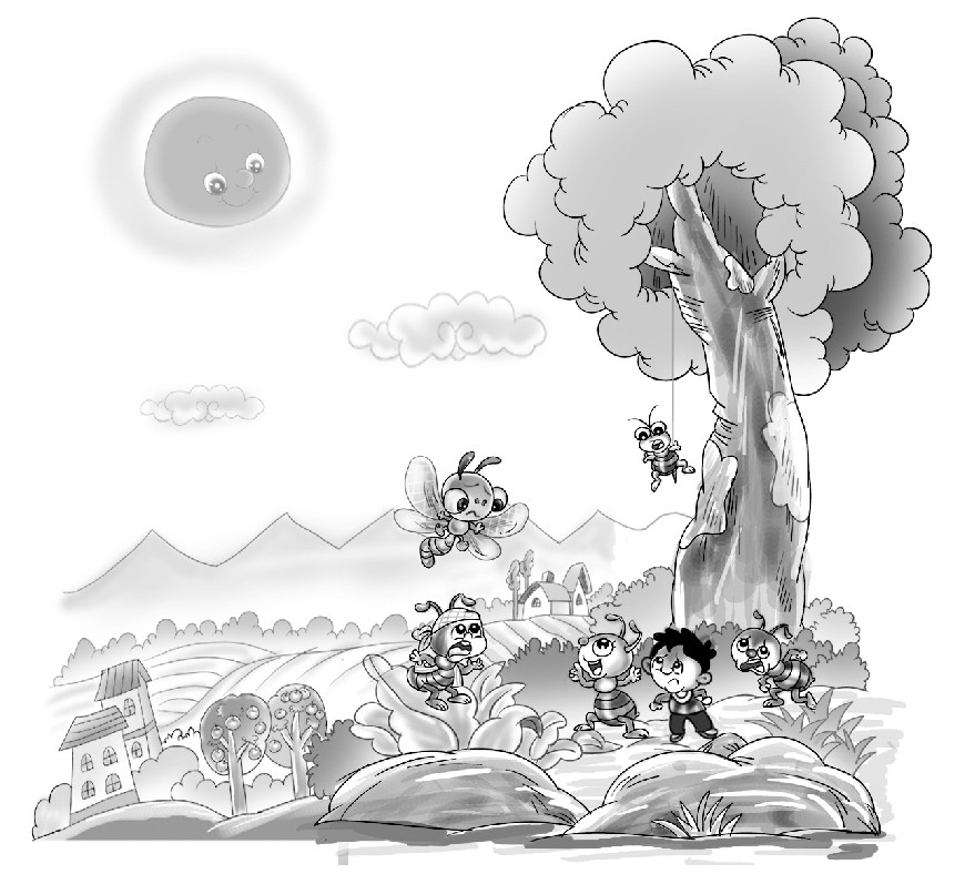 蚂蚁赶忙来劝解:“蜻蜓大哥消消气,我相信不是每个小孩儿都是那么调皮的。”