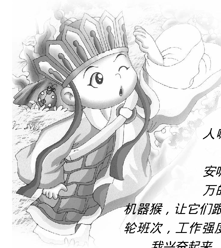 我突然想:为何不再造几个机器人当保安呢?《西游记》里说孙悟空麾下有成千上万的猴兵猴将,自己完全可以造一些智能机器猴,让它们跟着去巡逻。这样巡逻队人多了,就可以轮班次,工作强度不就减轻了吗!