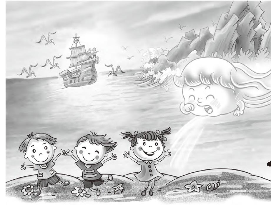 金黄的沙滩上,许多孩子在快乐地玩耍着。可是,有一个小女孩的漂亮的裙子被海水打湿了,正在伤心地哭泣。我走到她身旁,对着裙子哈了一口热气,不一会儿裙子就干了,小女孩露出了花朵般的笑脸。