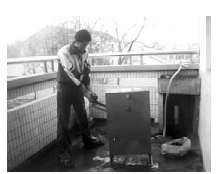 使用时只要将荸荠倒入进料口,打开自来水龙头,合上顺转开关,机轴顺转刷洗,通过水与圆滚筒上毛刷的作用,将荸荠上的泥土洗刷干净。将开关打到倒转挡,洗刷干净的荸荠就从出料口被推送出来,完成荸荠的清洗任务。