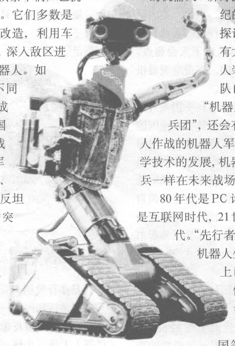 80年代是PC计算机时代,90年代是互联网时代,21世纪则是机器人的时 代。“先行者”的诞生说明我国的机器人生产水平在国际社会上已经占有一席之地。但是我国“机器人学”起步较晚,总的来说落后于日本、美国等发达国家的水平。研制出更先进、更科学的高智能机器人的任务将会落在我们的小读者身上。