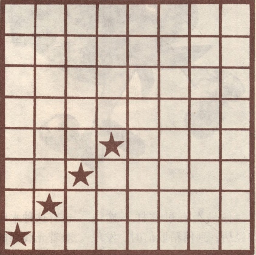 请将8 × 8的正方形分成四块面积、形状都相等的图形,并使每块图形中都有一颗星,该如何分?