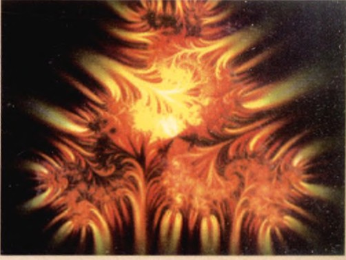 图中这些精致的图案在欧几里得几何中被称为“怪物”,但它们所拥有的美丽绝不亚于对称图形的美,并且为几何学打开了一个完全崭新的大门一一分形。分形物体有一个特殊性质,即在其不规则性中有一些规则性:不规则性的程度在各种不同的比例尺下保持不变,人们从远处或从近处观察时,分形物体都呈现出同样的外形。这就是分形物体具有的所谓“不同比例的不变性”,即不论放大到何种程度,这些物体都呈现出同样的外观。因为分形图案典型的特点之一就是图案的每一部分都与整体相似,这与古典的欧几里得几何中平滑连续的图形截然不同,但同样是我们熟悉不过的,因为它惟妙惟肖地模仿了大自然的形状,可以说,它才是真正描述大自然的几何学。