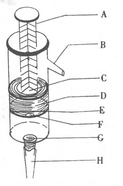 E相当于上阀门,是自行车内胎剪成的小圆片做成。拔掉活塞、垫入底部即可。