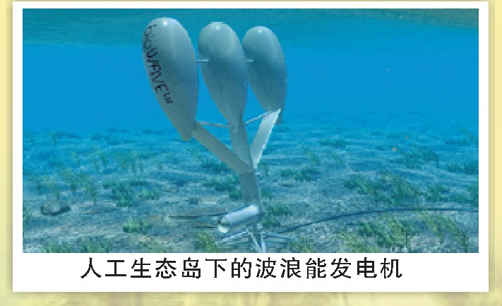 人工生态岛下的波浪能发电机