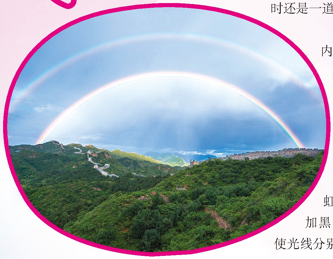 仔细看看前面那张“环形彩虹”的照片,你是否发现它除了是环形外,还有一点也和我们平时看到的彩虹不太一样呢?没错,它同时还是一道“双彩虹”。