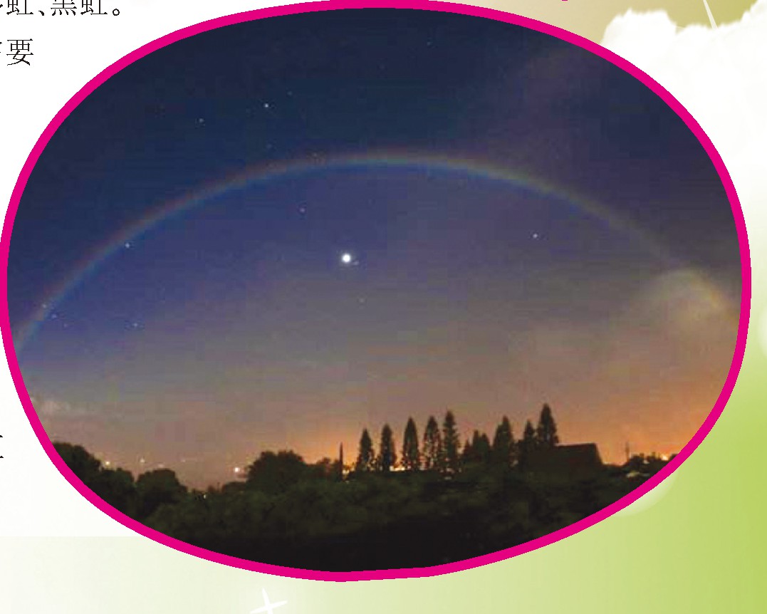 你是不是以为只有白天才会出现彩虹呢?其实,还有一种彩虹是晚上出现的,那就是月虹,也被称作黑色彩虹、黑虹。