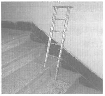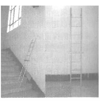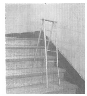 方案:在梯子的四条腿内全部套入可抽拉的管,使梯子的四条腿都可以伸长或缩短,这样既可以使它在楼梯上使用,又可以整体伸缩,还可以做长梯使用。我试着用塑料管做了一个模型,经过模拟实验验证,基本上达到了预想的效果。如果用凹槽形铝合金材料制作这个梯子效果就更完美一些。