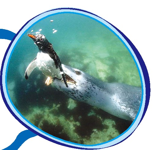 在我生活的南极洲,既有我赖以生存的食物,也有我的天敌,我们共同构成了南极大陆生态圈。