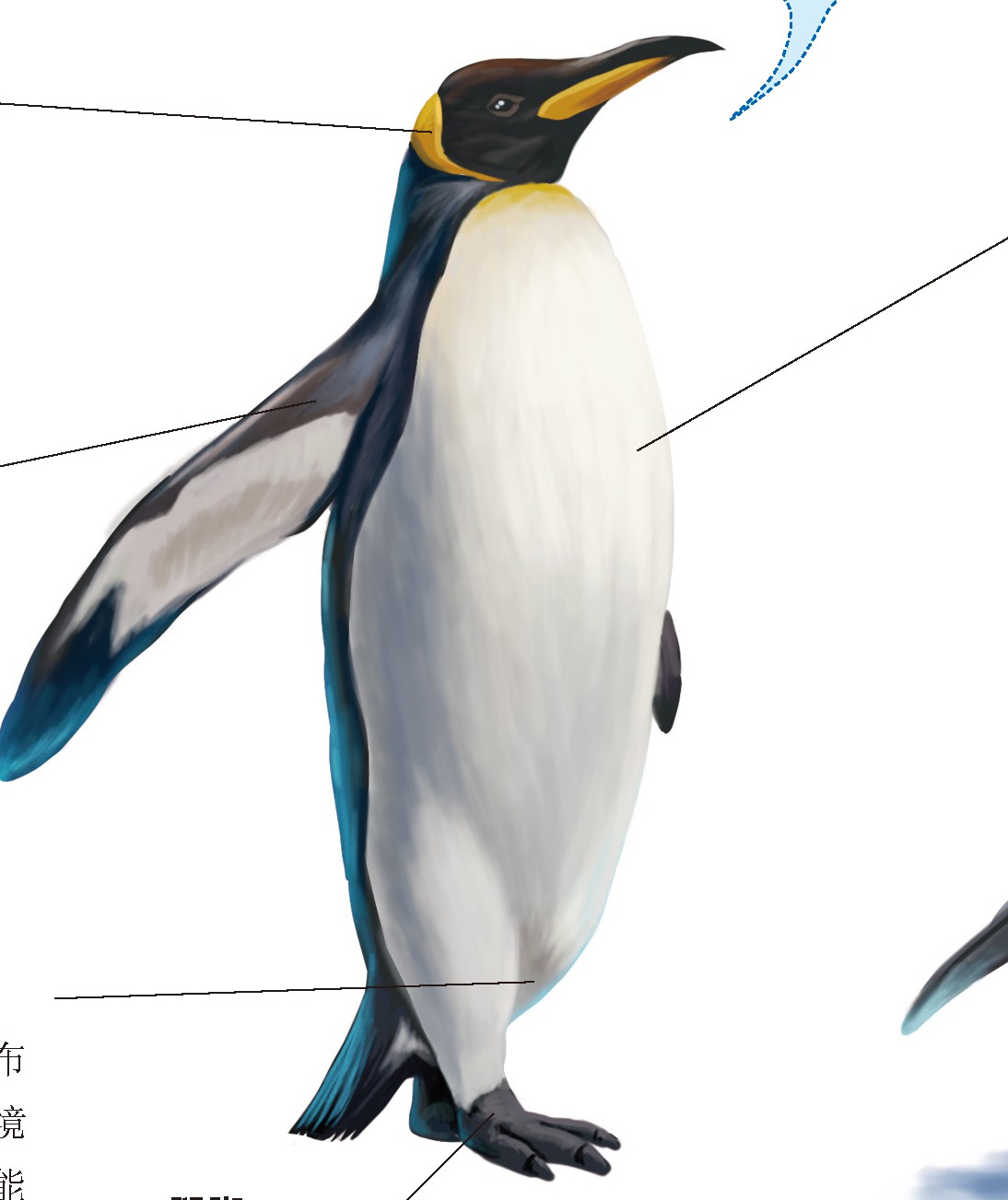 在我体内,有一层3~4厘米厚的脂肪层,这些脂肪是我保持体温和抵抗寒冷的主要热量来源。我在孵蛋的时候,不吃不喝,就是靠消耗自己的脂肪层来维持生命。