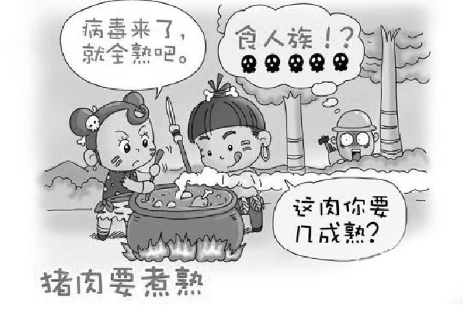 因为甲型H1N1流感病毒的构成让很多同学认为吃猪肉也会感染甲型H 1 N 1流感病毒,从而不敢吃猪肉。其实完全不用担心,因为当猪肉加热至71摄氏度时,就能杀死猪流感病毒,所以依照中国人的烹饪习惯,我们不会因为吃猪肉或猪产品感染猪流感。只有在接触到感染了猪流感的病猪时,才有可能因为感染空气中的猪流感病毒而引发甲型H 1 N 1流感。