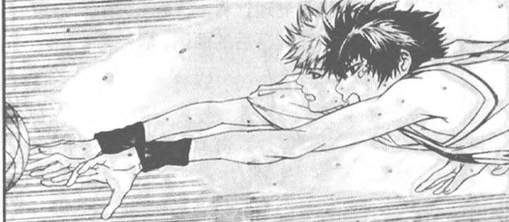 霸王队员一个空中大灌篮,103 : 100,闪电队落后3分。照理该把高照这个窝囊废换下来了吧?咦,人家教练就是不换!不过队员不敢把球发给高照了,发给另一个后卫运到前场。高照远远地站在人群外面——也是,冲进去马上就会被撞倒!