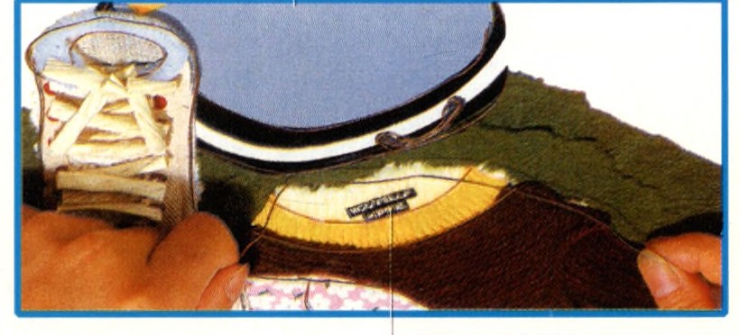 ●鞋子的鞋带是由纸藤代替的,鞋子整体则是由布料、毛衣搭配拼组而成。