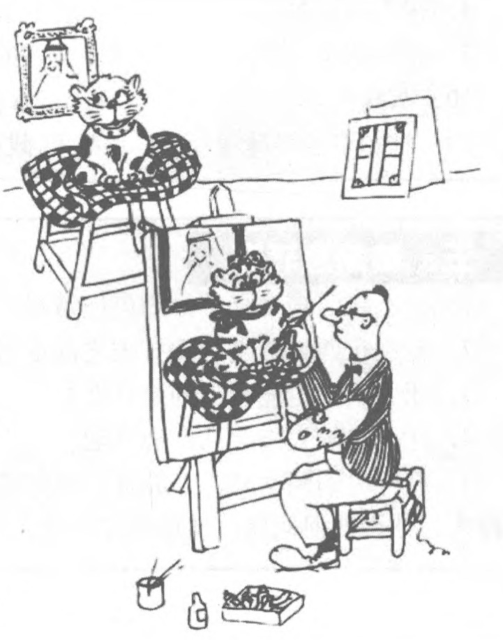 3.画家在给可爱的猫咪画画呢,仔细瞧瞧,图画和实物之间有哪8处不同?
