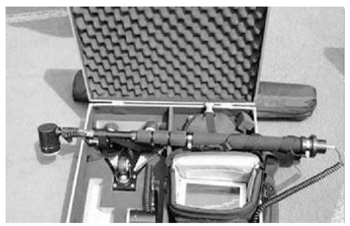 这个家伙表面上很不起眼:装置设备的箱子,还不如一般的旅行包大。但它有一个能伸缩的棍状探杆,能“看到”难以观察的“死角地带”,尤其在黑暗中,它还能自动转换为红外摄像头,显示黑白图像进行搜索。这样就能不知不觉地24小时守护北京奥运会了。