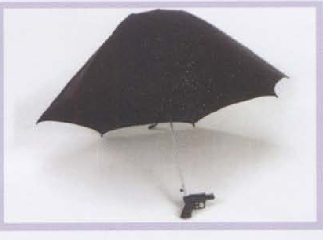 这款雨伞通过凹陷的顶部收集雨水,并通过伞柄把水输送到枪膛里,因此,只要下雨,你就永远有用不完的“子弹”。