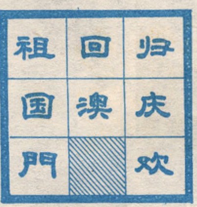 下图有八个汉字,要求沿空格移动,然后按文字的顺序(欢庆澳门回归祖国)排列起来,要求用最少的步数排成,请试试看。 (谢革)