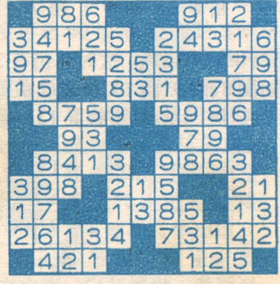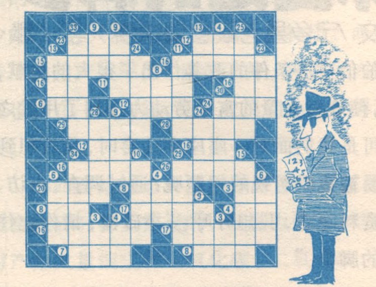 方阵中由左至右或自上而下的每行前均有一个数字,上半部的数字代表各横行上空白格中几个数字相加之和。而下半部的数字则代表各纵行上空白格的数字之和。明白了,可以开始了,限时五分钟。 (张祉杰)