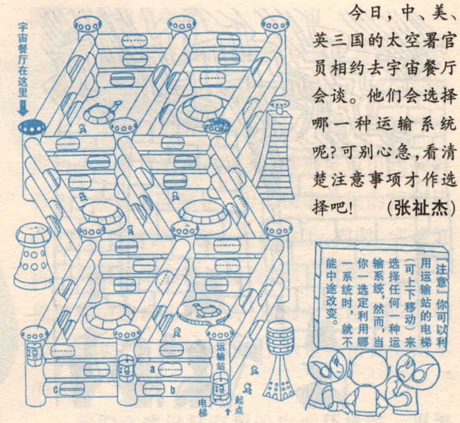 今日,中、美、英三国的太空署官员相约去宇宙餐厅会谈。他们会选择哪一种运输系统呢?可别心急,看清楚注意事项才作选择吧!(张祉杰)
