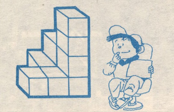 图中已排放了9块积木,要想搭拼成每边为4块积木的正方体,还需要多少块积木呢? (谢革)