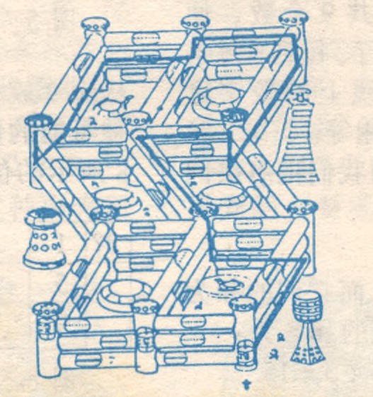 附图是一座未来太空都市。在这里有三种自动化的运输系统;
