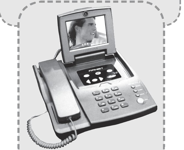 可视电话:如果说普通电话是“顺风耳”的话,可视电话就既是“顺风耳”,又是“千里眼”了。这种电话是利用电话线路传送人的语音和图像。用户的半身像、照片、物品等都可以通过这种电话传送到另一方,让另一方看到。