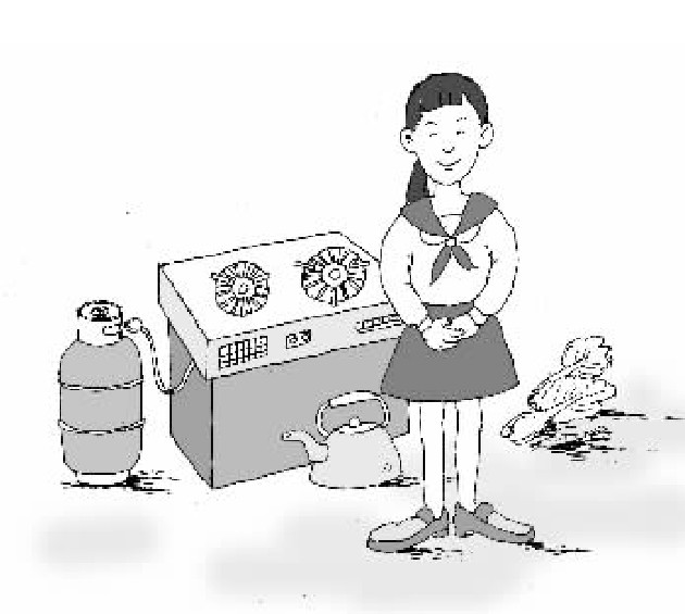 所以我想发明一种自动灭火厨具。这种厨具装有传热感应器,并在煤气开关上装上一个伸展性能很好的感应芯片。当厨具表面被燃烧至70!时,传热感应器会自动启动,将热能传到煤气开关的感应芯片上。感应芯片受热膨胀,从而阻断煤气的输送。同时降温的溶剂也会从厨具的底部喷出,这样就不怕厨房着火啦!