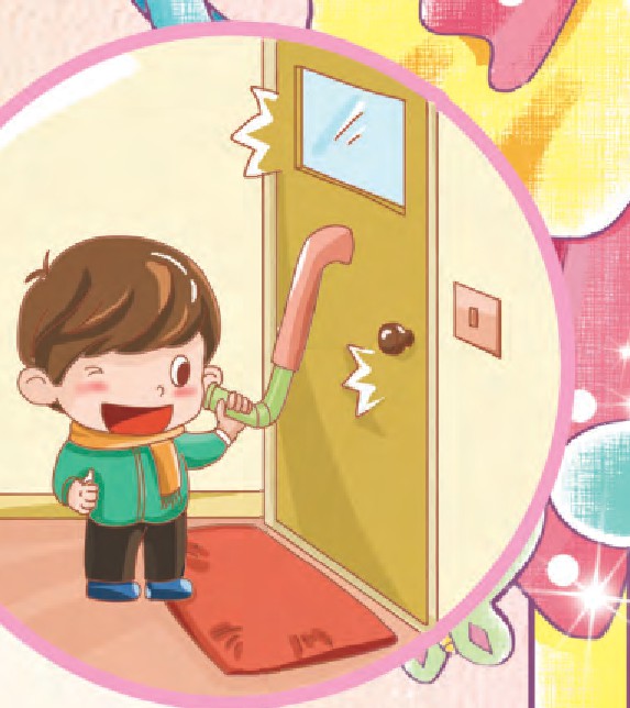 防盗门上的猫眼,可以很好地观察屋外的情况,可是猫眼的位置比较高,如果小孩用的话有点麻烦,所以我想设计一款“儿童猫眼”。就像潜水艇的潜望镜一样,我设计的儿童猫眼连着一根管子,这根管子是可以伸缩活动的,这样无论是大人还是小孩,都可以通过管子的孔眼连接到猫眼,就能轻松地看到屋外的情况了。