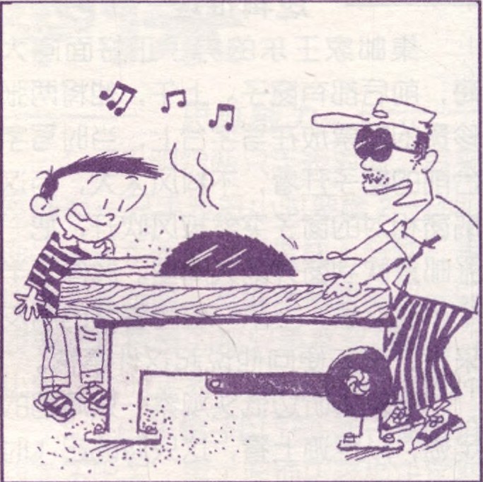 锯木头时噪音太大,在电锯上安装一个噪音转换器,就可以听到优美的音乐声。