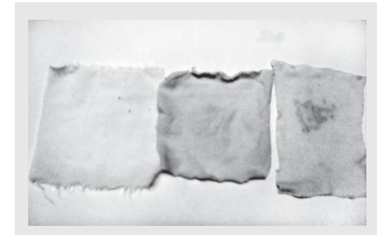 为了避免实验的偶然性,我还用的确良和全棉的布料做了实验,结果也是如此。看来时间(污渍的老化程度)会影响洗衣粉的去污能力。