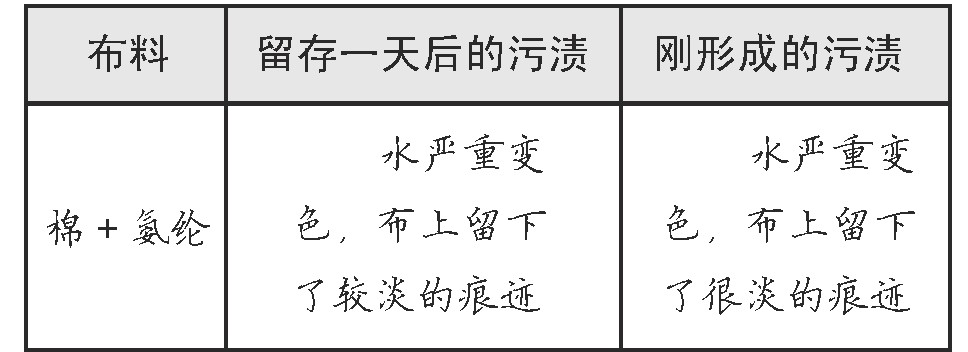 就在我做完第二个实验的同时,又一个问题浮现在我的脑海中。有时候我们把衣服弄脏了,并没有在当天清洗,那么污渍在衣服上留存时间的长短会不会影响洗衣粉的去污能力呢?