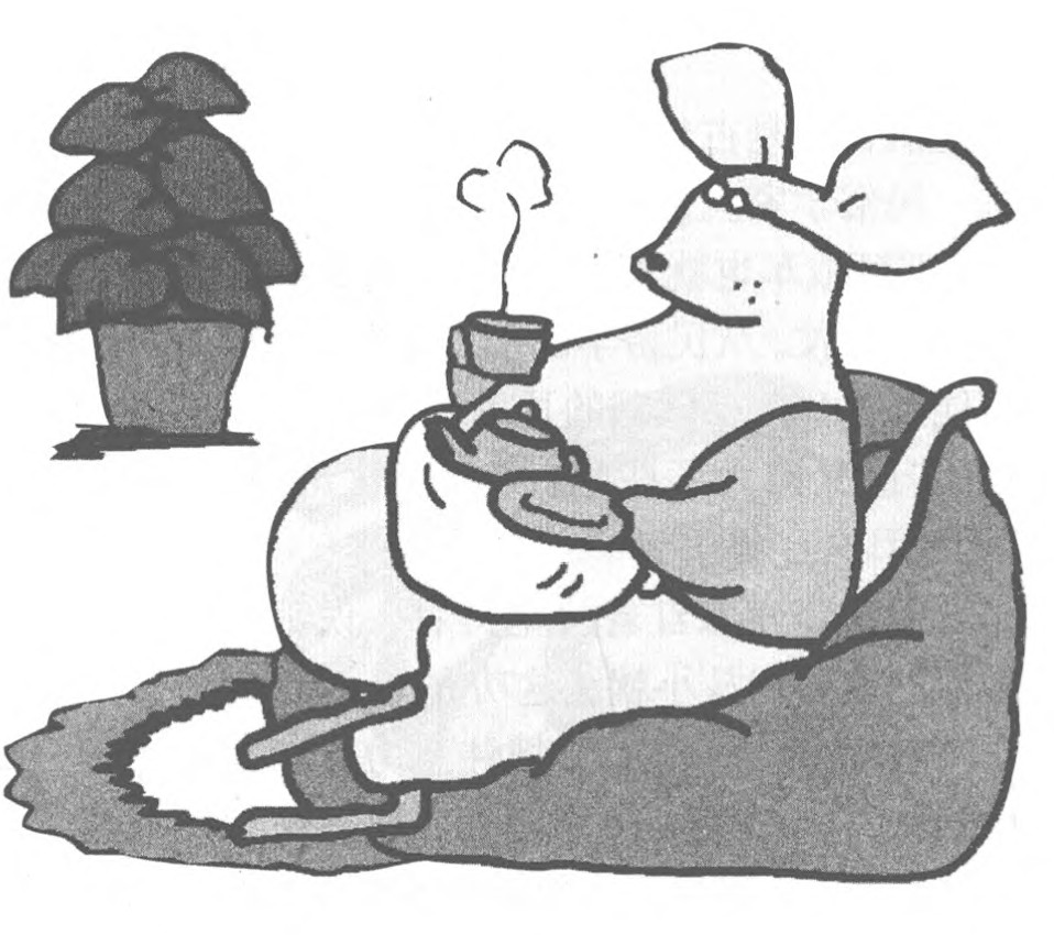 袋鼠妈妈听狗熊这么一说,心就动了。狗熊拉着袋鼠妈妈和她的孩子,走进一条小街,在一间小屋子前停了下来。袋鼠妈妈见条件这么简陋,回头就想走,被狗熊一把拉住了,狗熊说:“你别看诊所简陋,其实我的医术十分了得,快进去吧!”