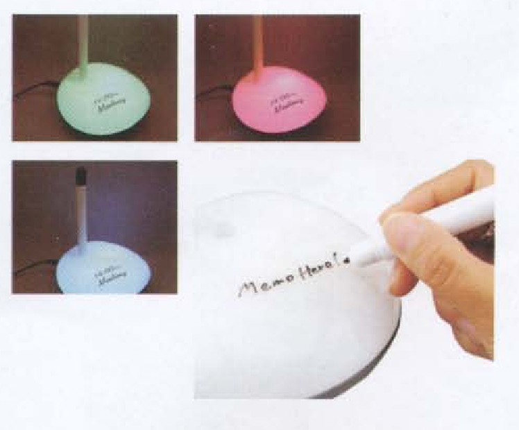 现在是资讯大爆炸的时代,每个人都有太多重要的消息,但脑容里却非常有限。而这款USBMEMO灯,就可以让你轻松地随手写下重要事项而不用担心会忘记。这款灯上配有一个手写笔,手写笔一头是笔尖,另一头有一个橡皮擦,我们可以随时更新记录资讯。而当插上USB线后,还可以化身为多彩的小台灯,摆在床头也非常有气氛。