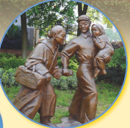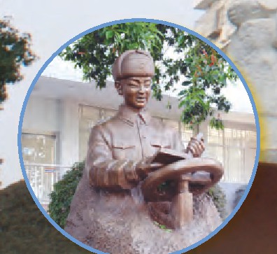 奥秘精灵一走进学校,就看到很多和雷锋叔叔有关的雕塑。