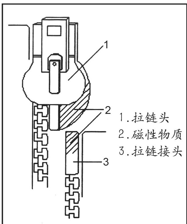日常生活中,拉链广泛应用于衣服、手袋、皮包、鞋帽等物品的制作当中,是一个适用范围很广的产品。一到秋冬季节,人们都很喜欢穿拉链衫,不仅使用方便,保暖效果也比较好。梁铭同学发现,当盲人穿拉链衫时,却很难把拉链拉好,原因是盲人看不见,因此,很难将接头准确地插入拉链头凹槽内。“要是有一种方便盲人使用的拉链该多好啊!”出于这种想法,梁铭同学设计了如图所示的盲人专用拉链,它巧妙地利用了磁铁间存在吸引力作用的原理,在拉链接头与拉链头中加入磁性材料,当接头靠近拉链头时,就会产生吸引力而引导盲人迅速而准确地拉好拉链。