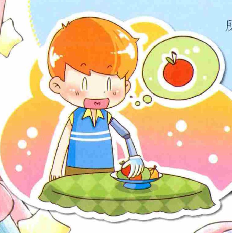 人们因为意外或者疾病会造成肢体不健全,所以我想发明一种智能假肢。这种智能假肢能 接收大脑所发出的生物电信号,如果你想吃 苹果,就可以用大脑控制假肢让它给你拿苹果;如果你想散步,它就帮助你走动……只要安装上这种智能假肢,四肢不健全的人等于重新拥有了新的肢体,就能更加自由自在地享受新生活了。